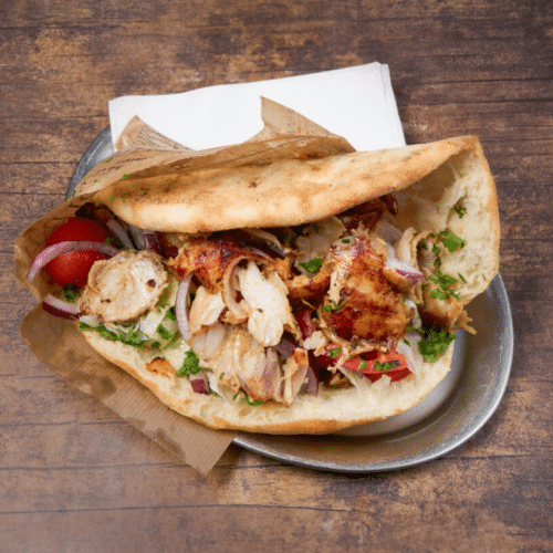 Lahmacun Rolle mit Hähnchendöner, Salat